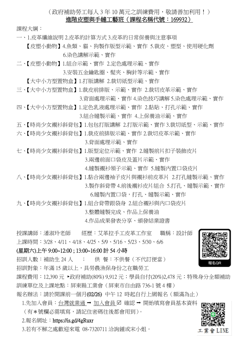 進階皮塑與手縫工藝班